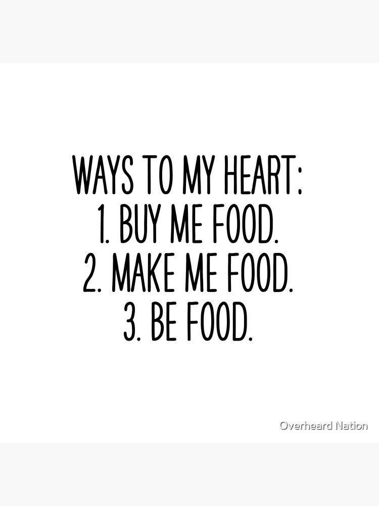 Ways to my heart. Buy me food. Make me feed. Be food.” Art Board
