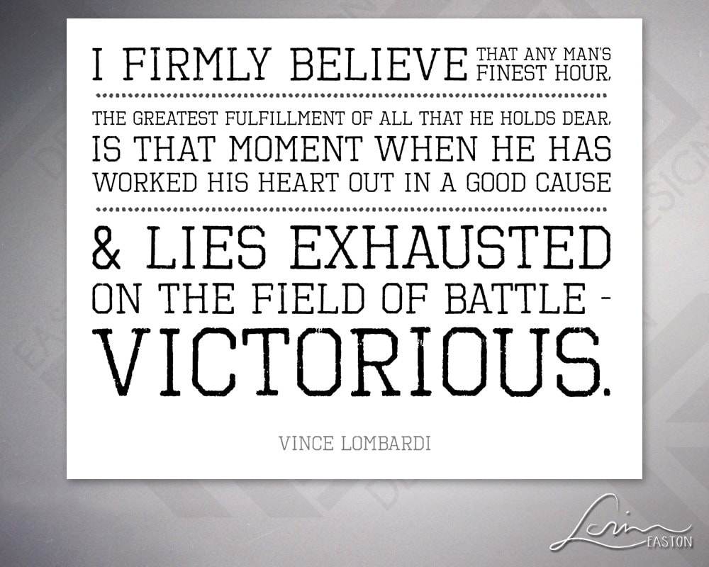 Vince Lombardi Field Of Battle Victorious – “I firmly believe that any man’s finest hour is that moment when he has worked his heart out in a good cause and lies exhausted on the field of battle, victorious.” “If I ever see one of my backs . It has been presented annually since 1970 to the player who best embodies the values and spirit of Vince Lombardi. All of the Lombardi Award winners, listed by year, can be found below. .